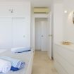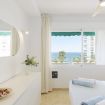 El luminoso dormitorio principal cuenta con una cama de matrimonio doble, un gran ventanal con orientación sur y vistas al mar y con un baño con ducha efecto lluvia.