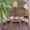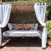 En la parte de la piscina encontraremos la zona de chill out con sofás para poder relajarte y la cama balinesa.